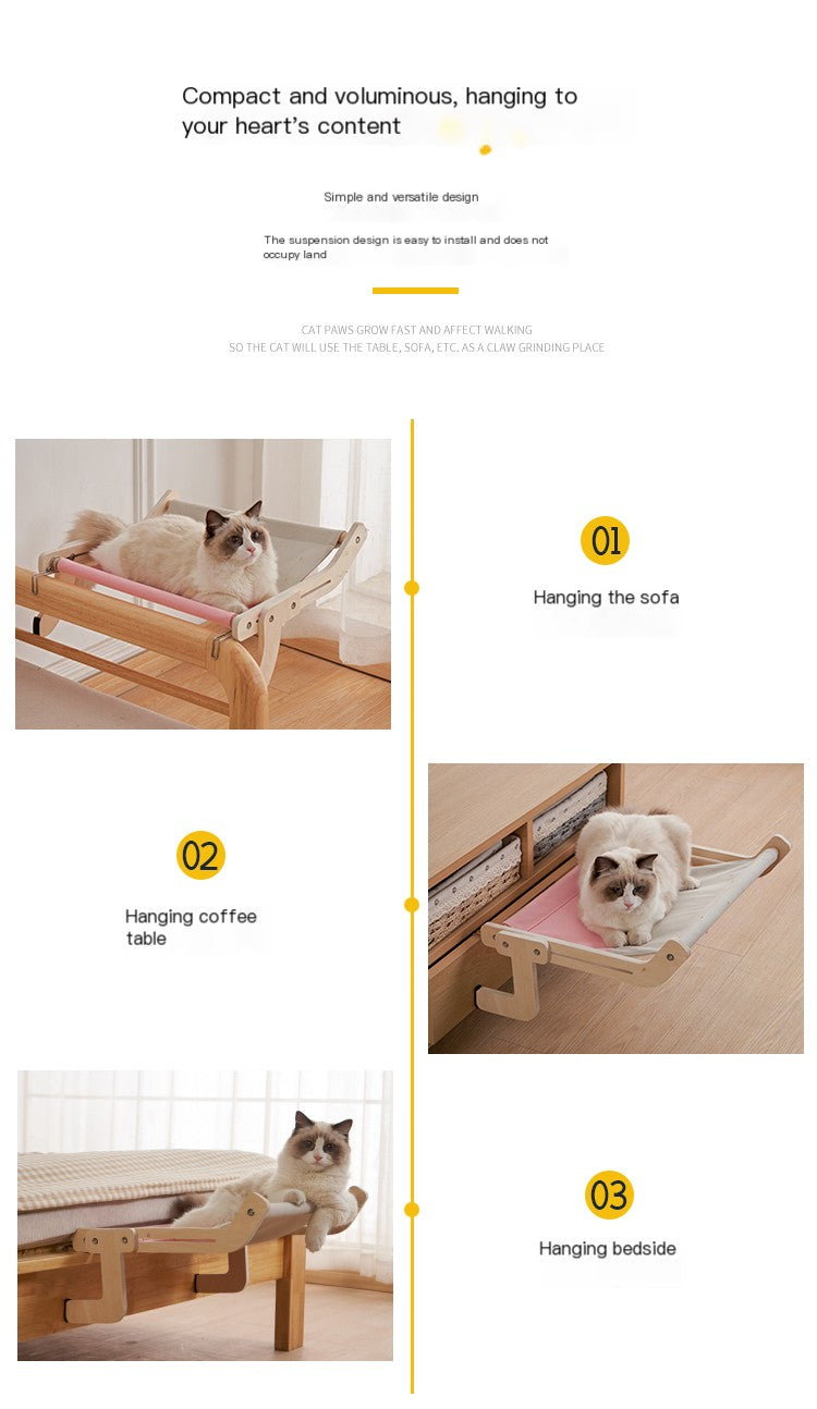 Crafted from high-quality wood, this hammock offers durability and stability. The unique thickened design ensures your kitty feels secure while lounging. Available in various attractive colors such as Ash Powder, Gray Yellow, Gray Blue, and more, you can choose the one that best fits your home décor.